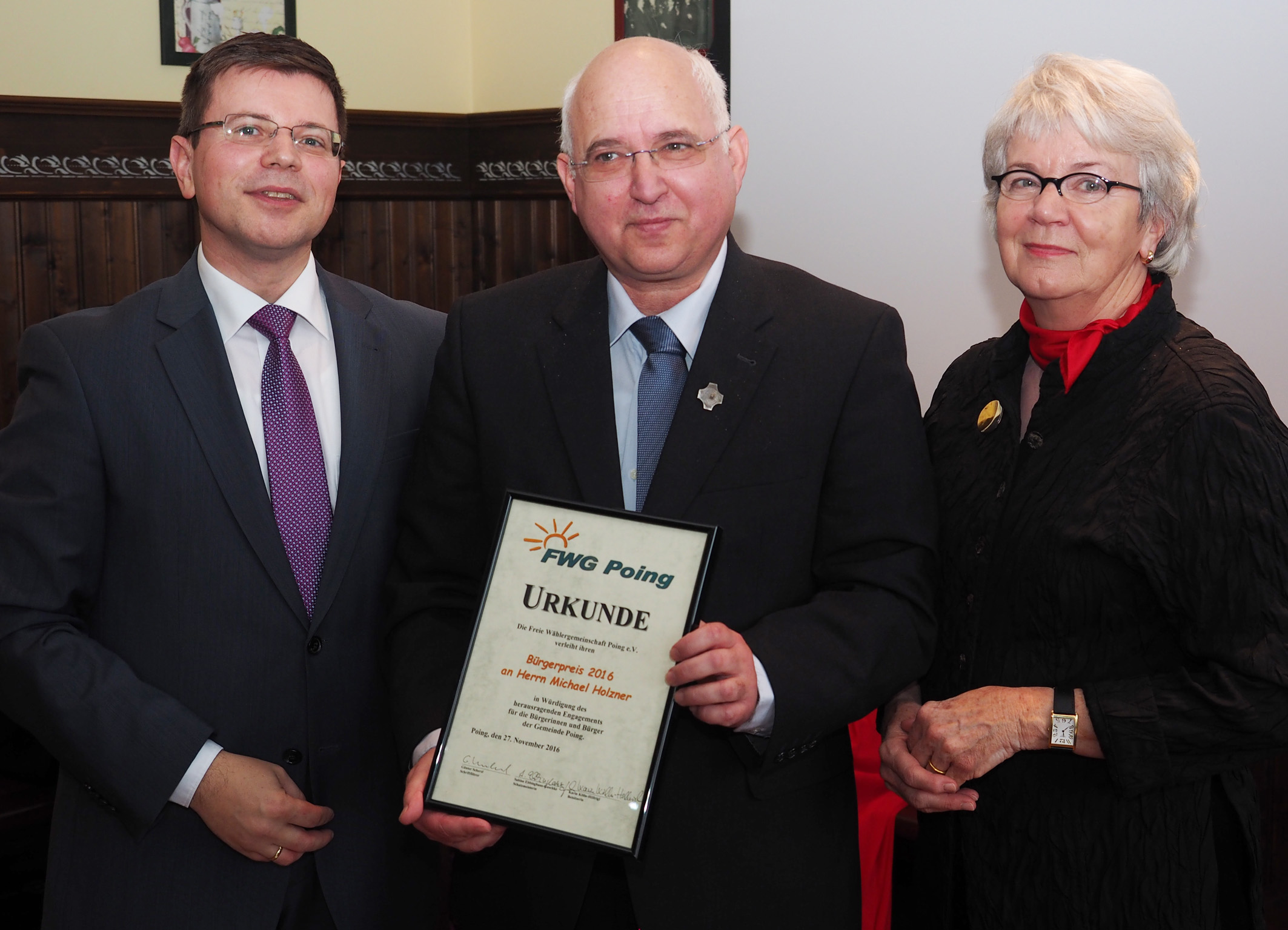 Traditionell am 1. Advent überreichten wir am 27. November 2016 -bereits zum 23. Mal- den FWG-Bürgerpreis. Diesmal an:
