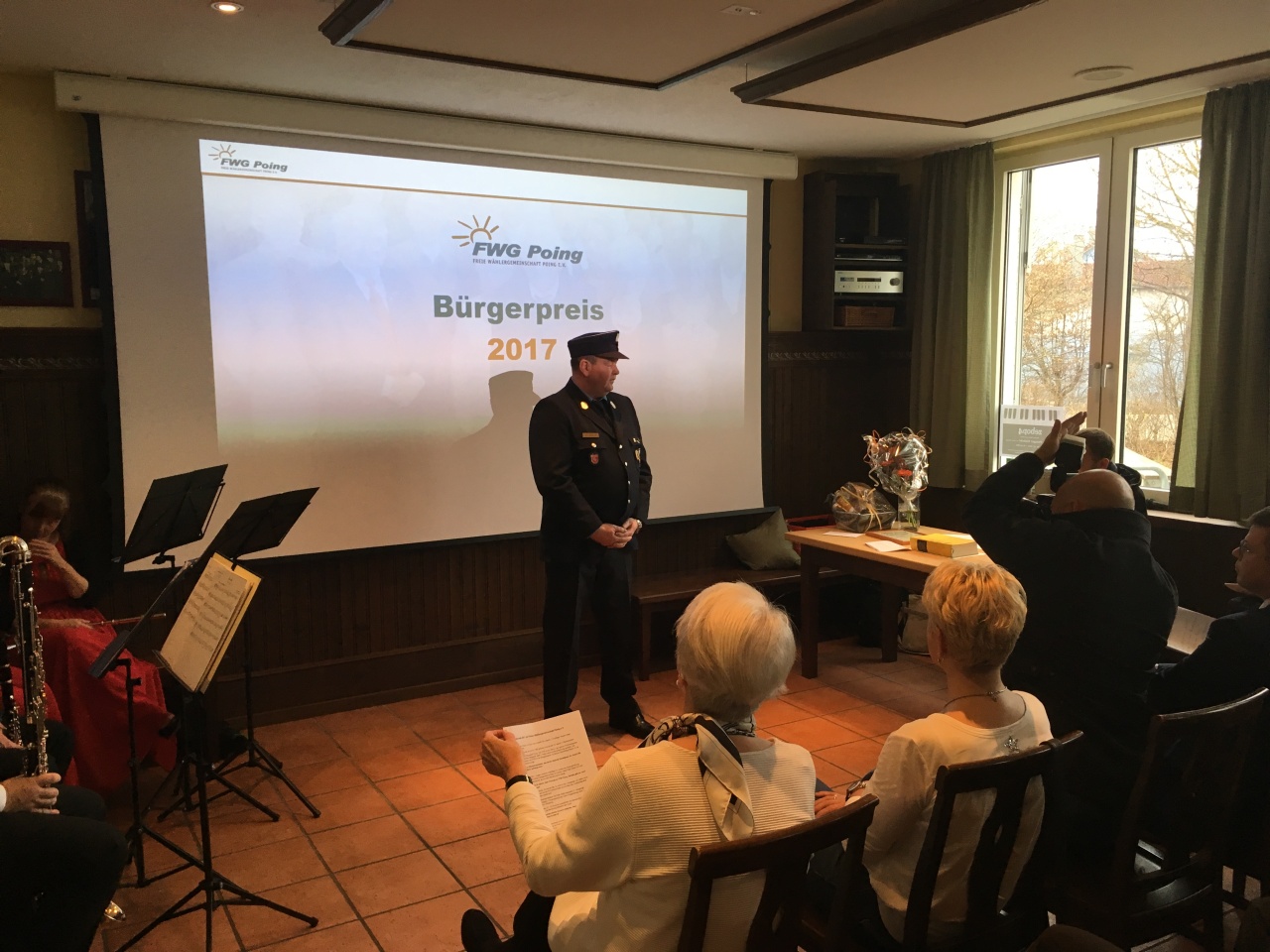 Traditionell am 1. Advent überreichten wir am 03. Dezember 2017 -bereits zum 24. Mal- den FWG-Bürgerpreis. Diesmal an: